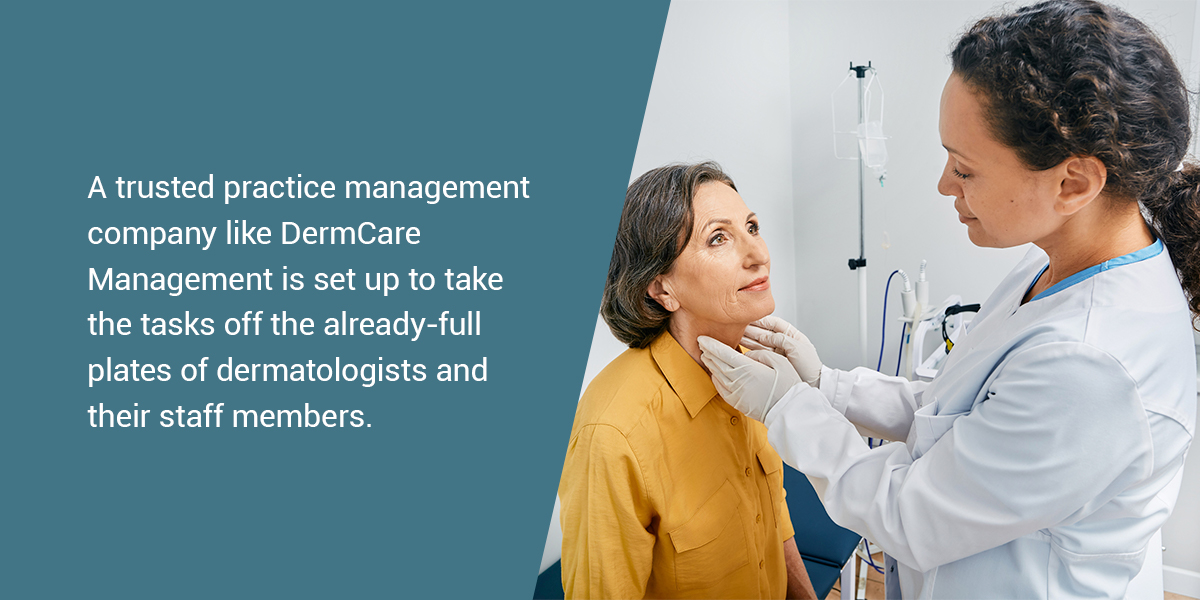 One of the biggest reasons for burnout in the medical community is the raft of documentation and back-office administrative work that must be completed daily. A trusted practice management company like DermCare Management is set up to take those tasks off the already-full plates of dermatologists and their staff members. That way, dermatologists can focus more on what brings the most fulfillment — serving patients.